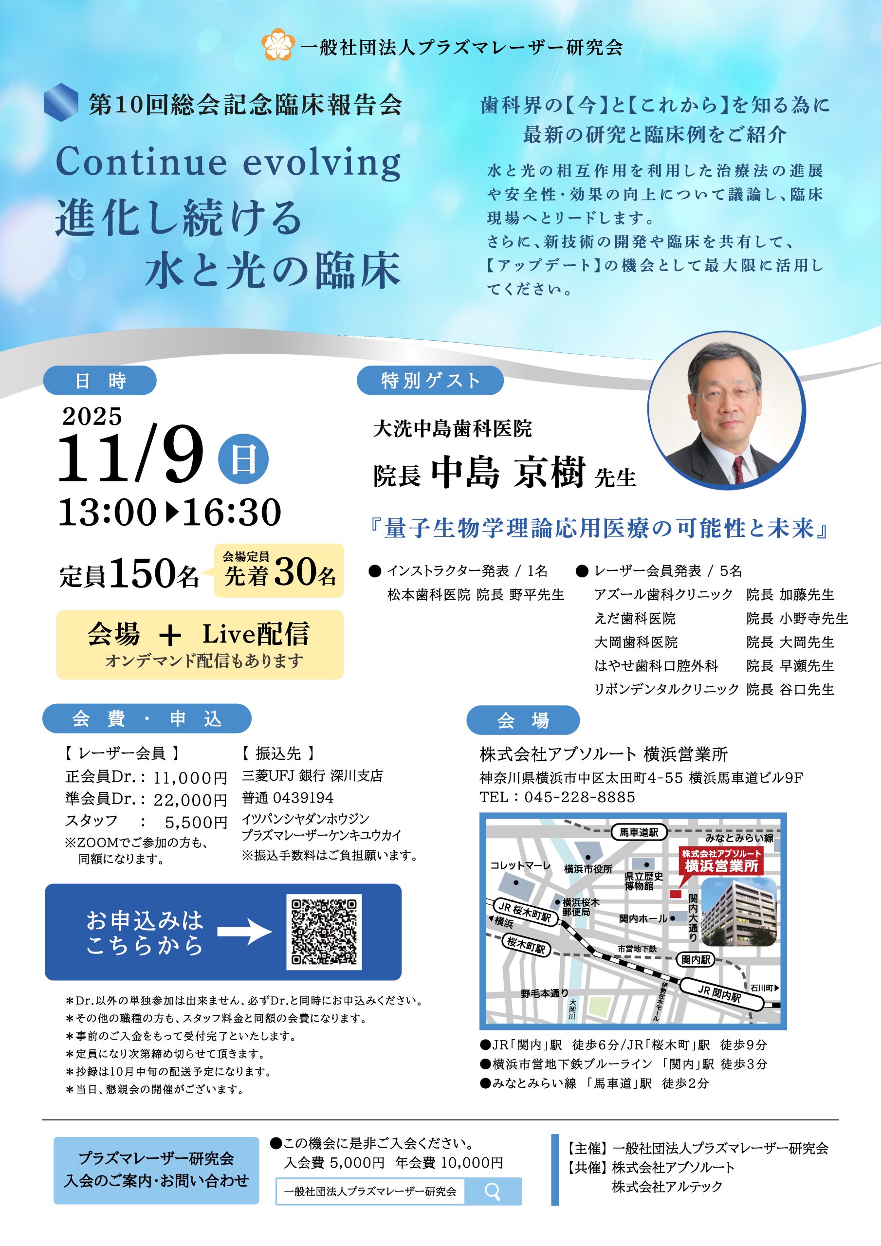 【2025年11月9日(日)】第10回総会記念 臨床報告会 開催のお知らせ