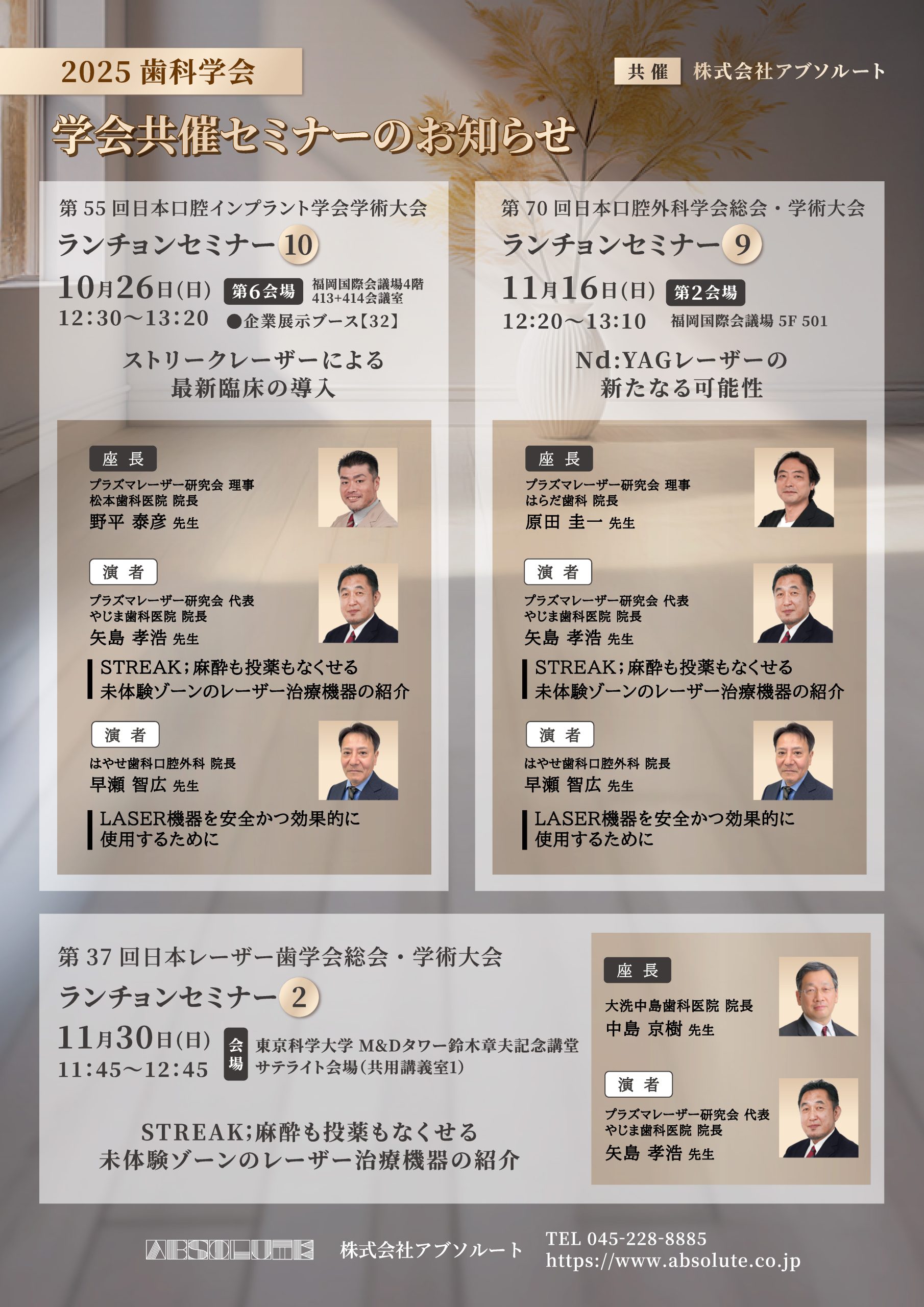 プラズマレーザー研究会では株式会社アブソルートと、下記の共催セミナーを実施いたします。
